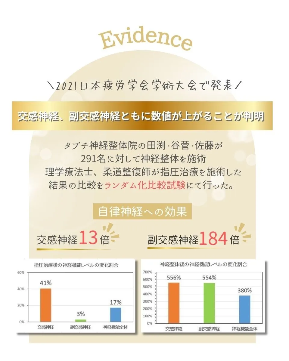 活発になってしまっている「交感神経」に対し「副交感神経」が優位になるよう施術していきます。
