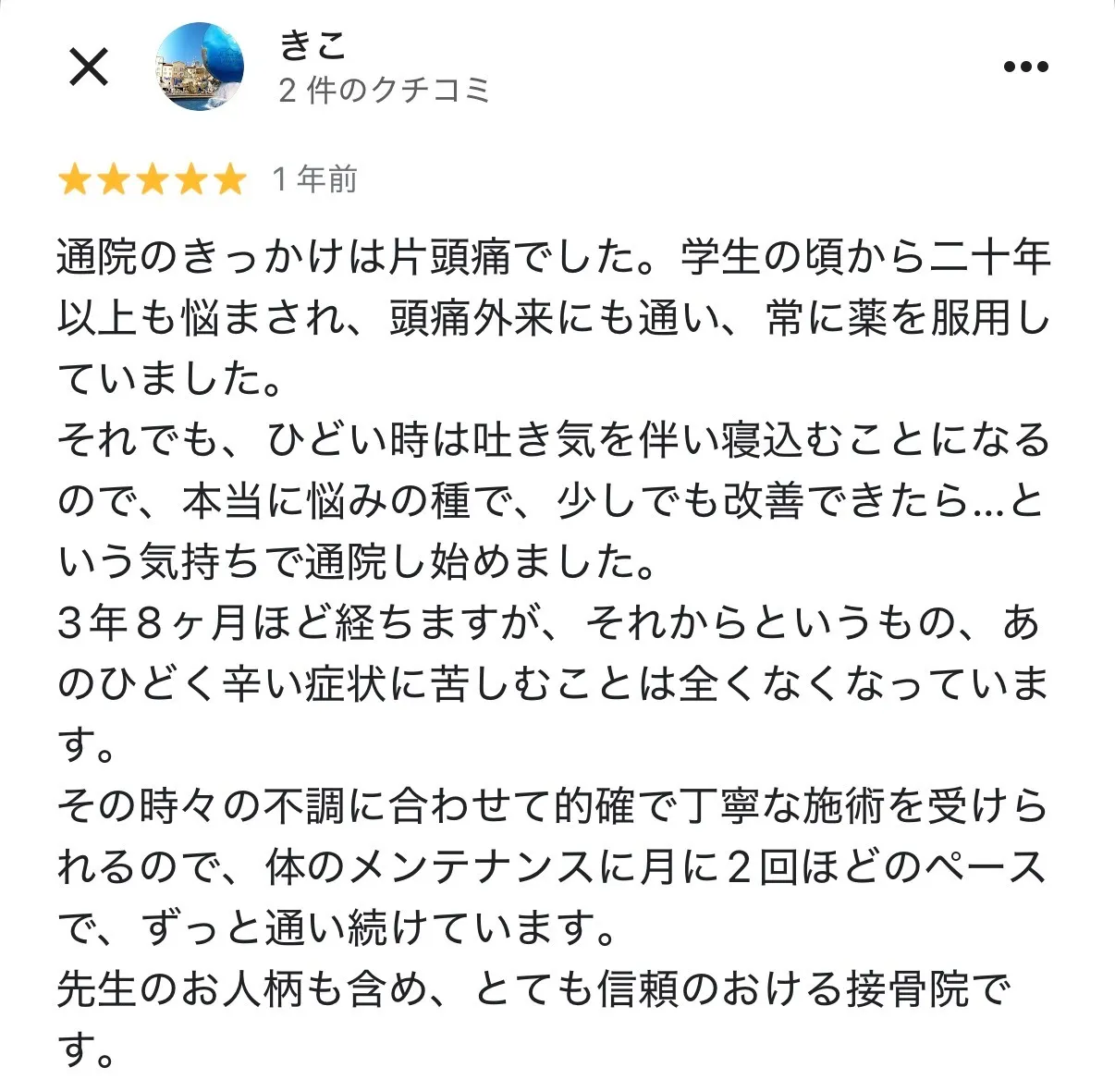 いろは接骨院は頭痛改善に強い院です